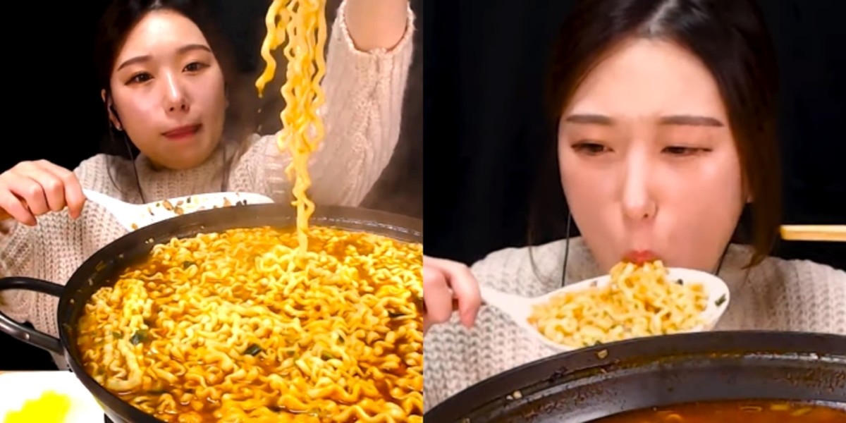 해당 영상에도 라면을 먹는 모습이 담겼다. 하지만 포인트는 어마어마하게 많은 양을 먹는다는 것.