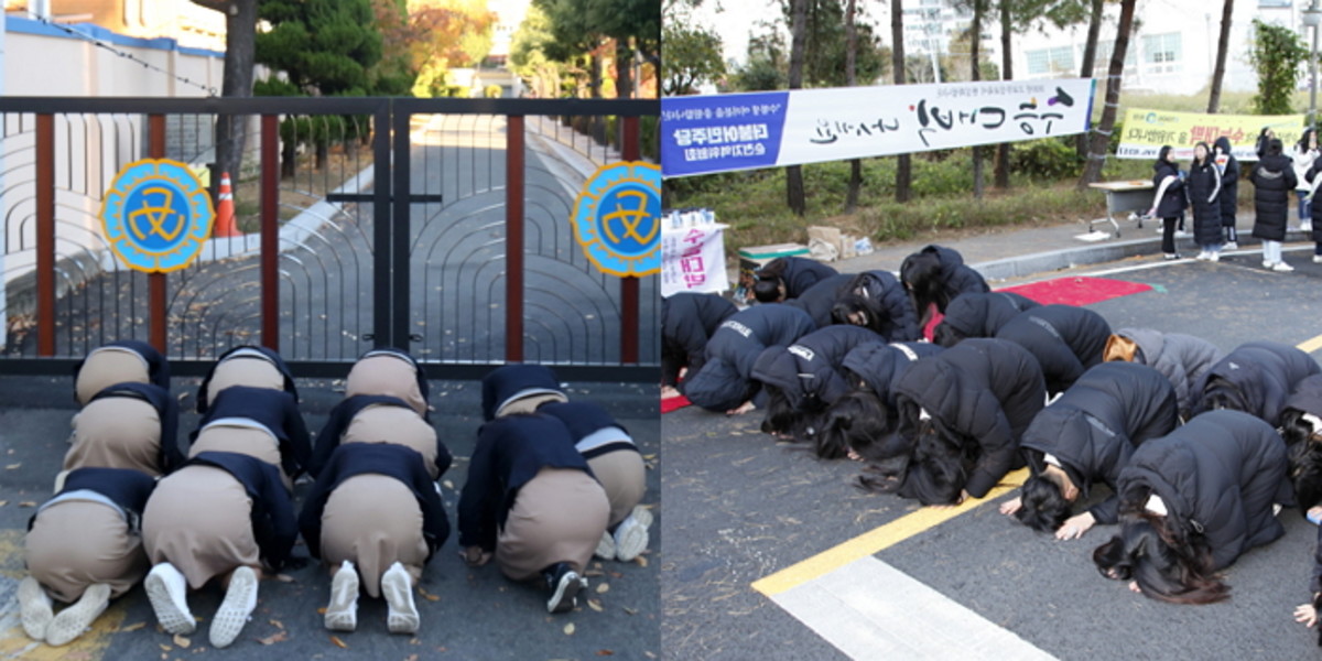 울산시 남구 울산여자고등학교 앞에서도 마찬가지로 응원을 나온 삼일여고 후배 학생들이 맨바닥에 얼굴을 숙인 채 큰절을 했다.