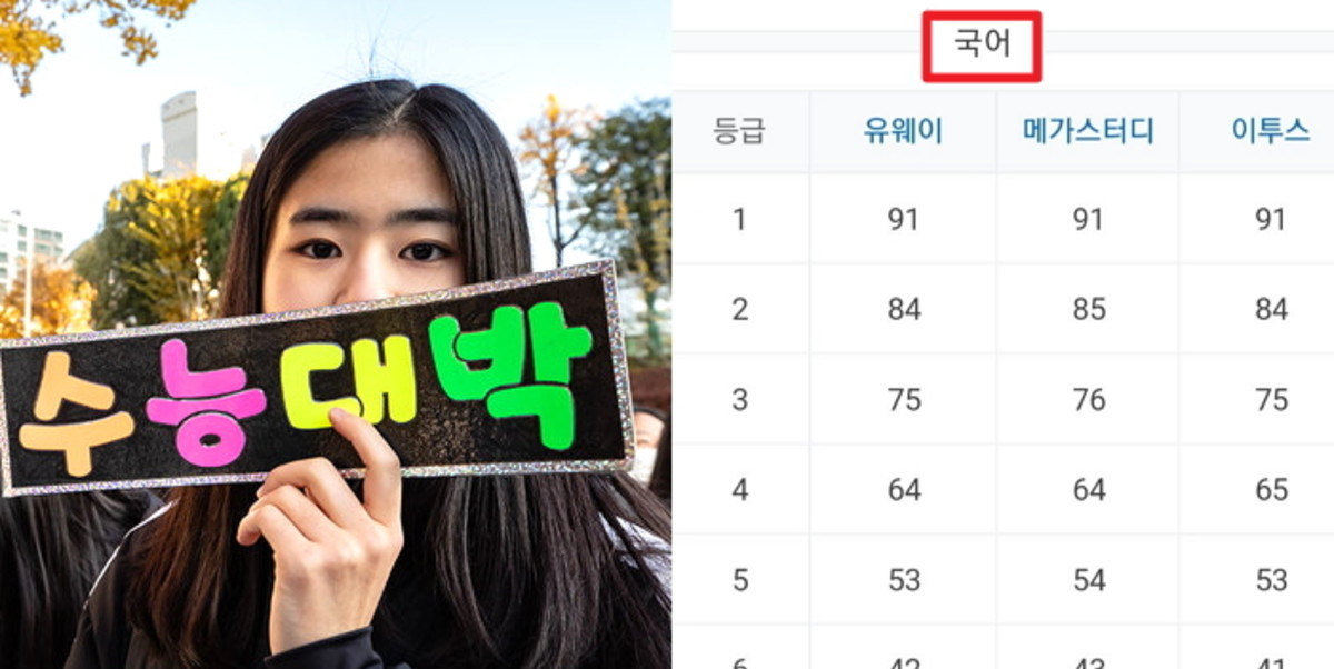 수능이 끝난 이날 오후 8시 유웨이·메가스터디교육·커넥츠스카이에듀·이투스는 국어영역 1등급 커트라인 예상치를 91점으로 잡았다.