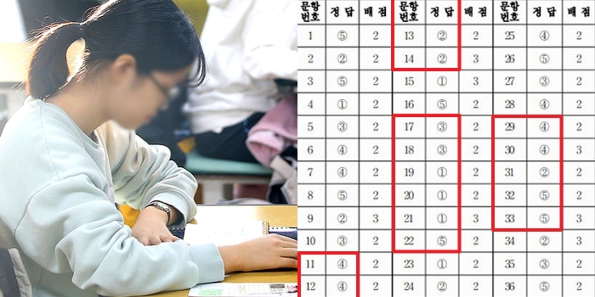 홀수형과 달리 유독 비슷한 정답 패턴에 누리꾼들은 "정답이어도 괜히 불안했겠다", "동공 지진 왔겠다" 등 안타까운 마음을 전했다.