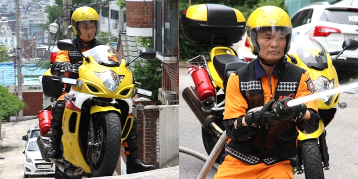 이 소방 오토바이는 소방차가 진입할 수 없는 좁은 골목길을 누비며 더욱 빨리 현장으로 출동하기 위해 마련됐다. 2.5kg 분말 소화기 2~3대와 15m 길이 소방호스 등 화재 진압 장비를 장착했다.