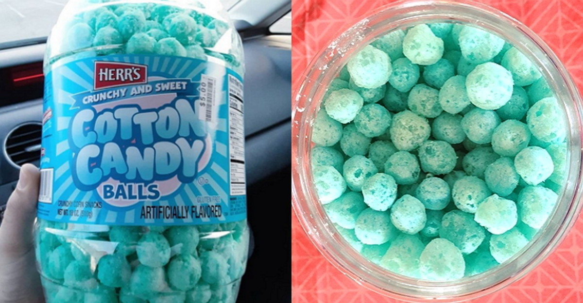 주황빛을 띠고 짭조름한 맛이 나는 치즈 볼 과자에 반해 코튼 캔디 볼은 파란빛을 띠고 달달한 맛이 강하다.
