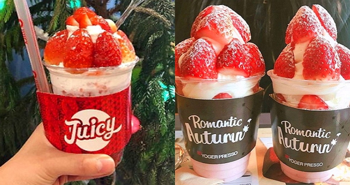 생딸기와 우유를 갈아 넣은 라떼에 통째로 제철 딸기를 듬뿍 올린 음료다.