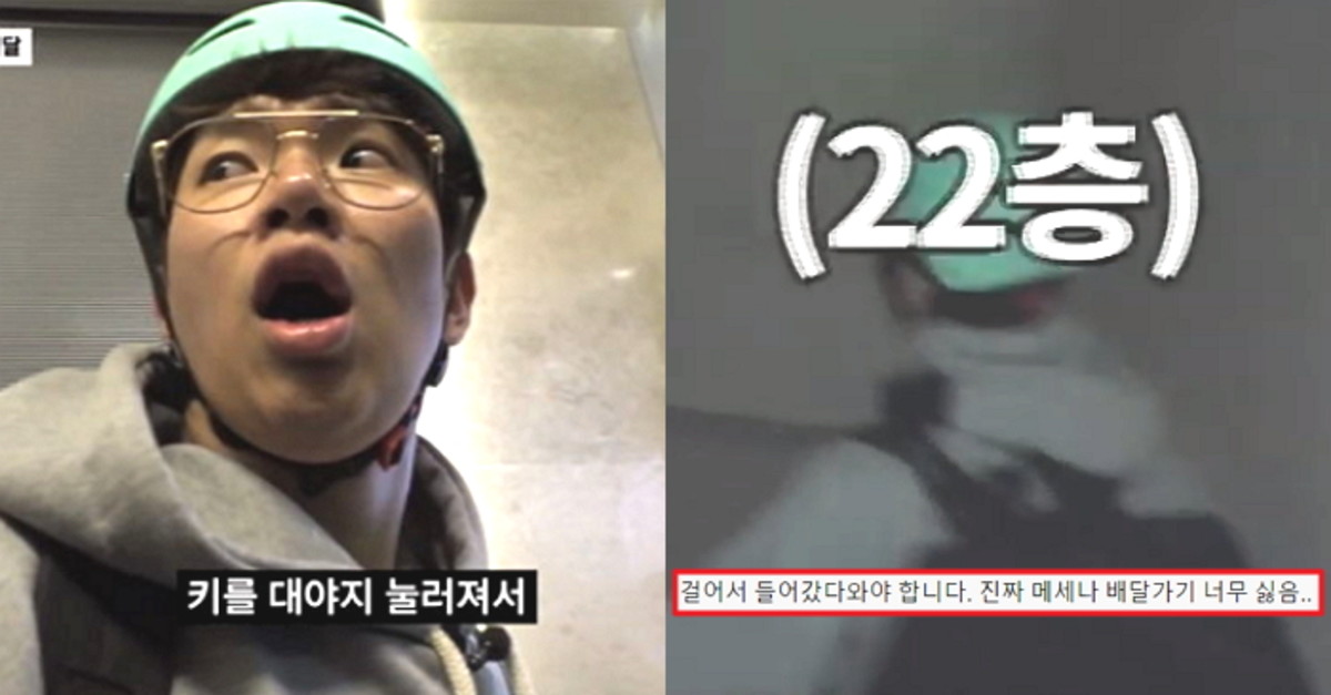 배달원인 장성규는 거주민 전용 카드키가 없는 것이 당연하기에 결국 25층에서 배달 목적지인 13층까지 계단으로 뛰어 내려갔다.