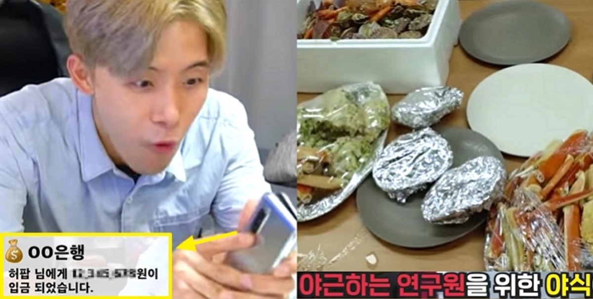 허팝은 그곳에 가 야근하는 직원들을 독려하고 못 먹은 직원들을 위해 다음날까지 아낌없이 대게 파티를 열어줬다.