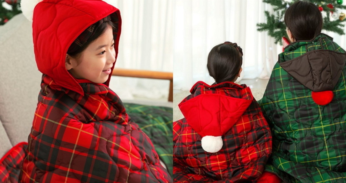 패딩 블랭킷은 크리스마스가 연상되는 빨간색과 초록색 체크무늬 두 가지로 이루어져 있다.