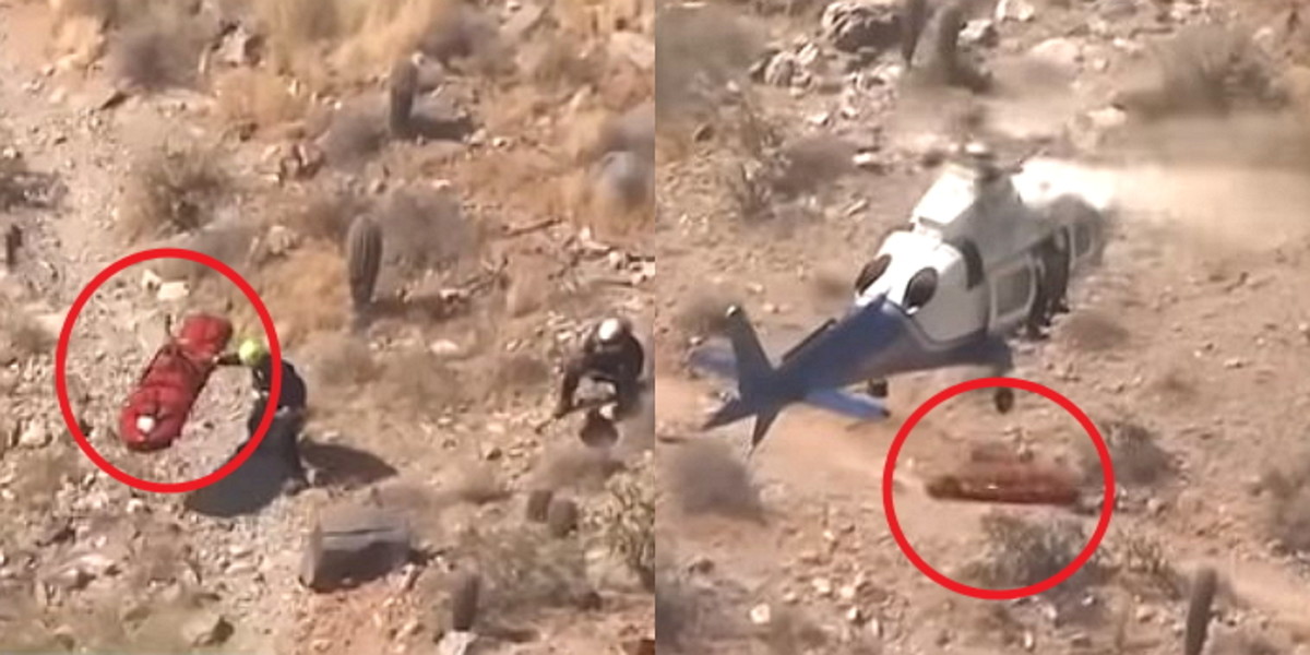 현장에 도착한 구조대는 헬리콥터로 이송하기 위해 카탈린 메트로를 들것에 실었다.