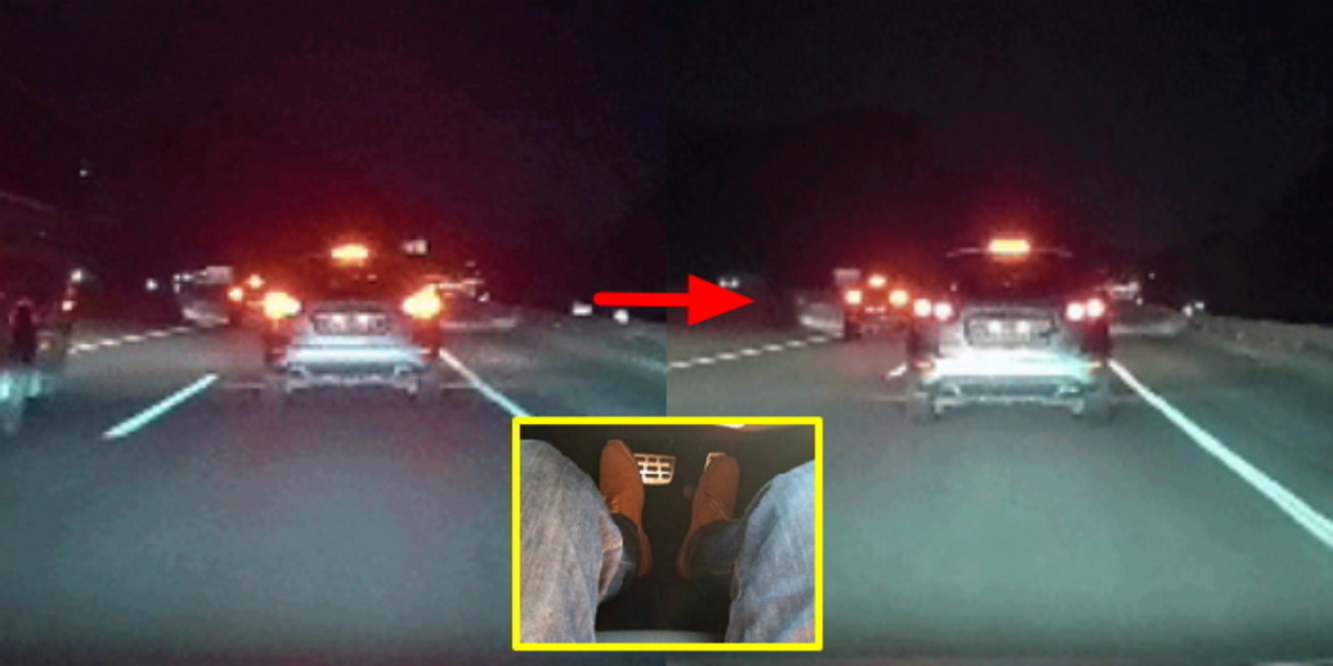 브레이크등이 1초 간격으로 쉴 새 없이 깜빡거리고 있는데 이는 양발 운전을 하고 있지 않다면 도저히 나올 수 없는 움직임이다.