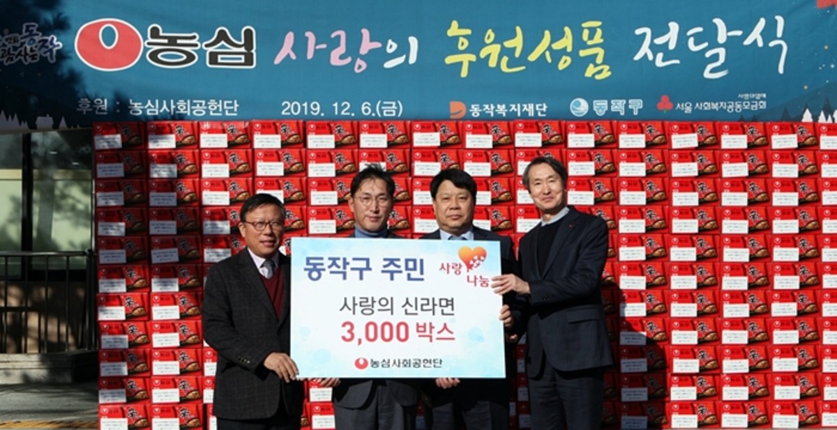또한 농심은 지난 11월 서울 상도동 일대에서 연탄 3천 장을 나르고 서울 대방동 동작노인종합복지관에서 김장김치 450포기를 담가 지역 어르신들에게 전달하는 등 지역사회에 온기를 전하는 활동을 꾸준히 펼치고 있다.