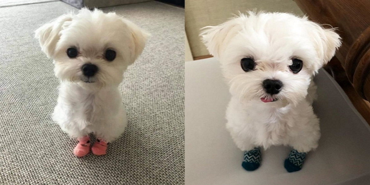 새 양말 신고 자랑하는듯한 귀여운 사진으로 SNS에서 스타덤에 오른 강아지가 있다.