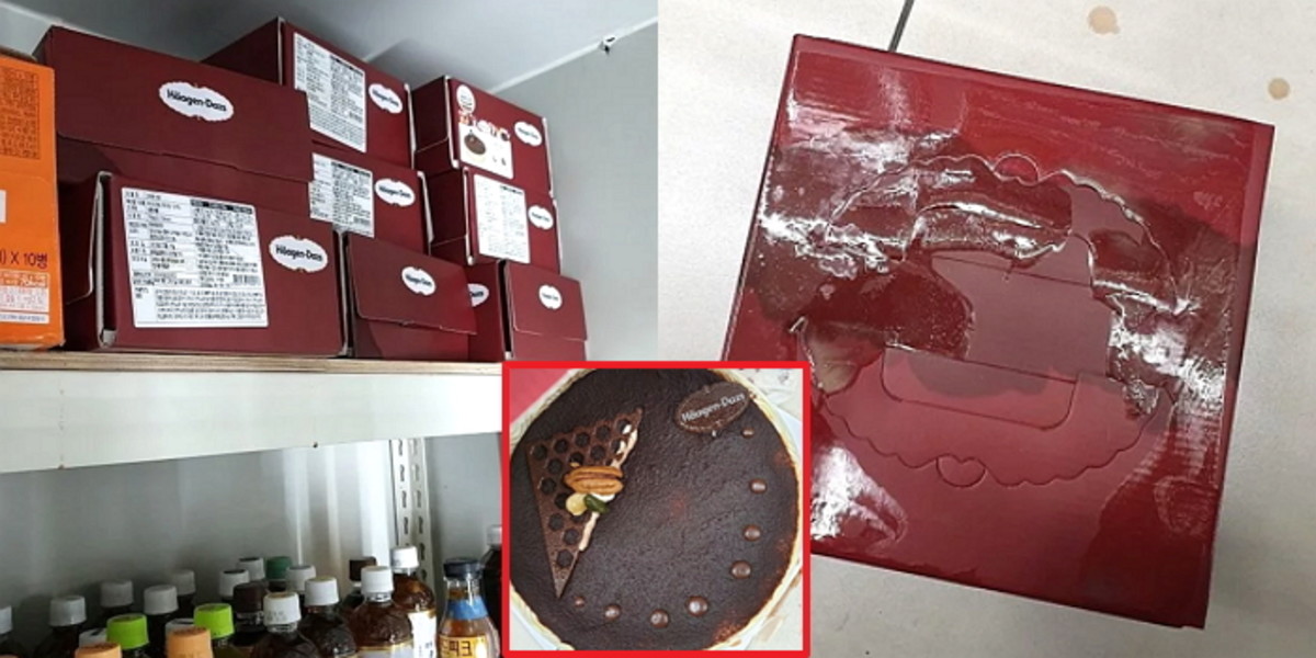 그는 하나에 3만 3천원 하는 하겐다즈 케이크 8개를 음료 창고에 고스란히 쌓아 올렸고, 시간이 지나 케이크는 모두 녹아버렸다.