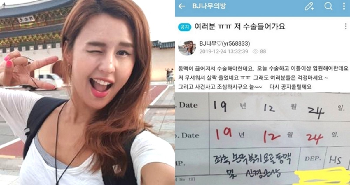 24일 아프리카TV BJ 나무는 자신의 방송국에 "여러분 저 수술 들어가요"라는 짧은 글과 사진을 게재했다.