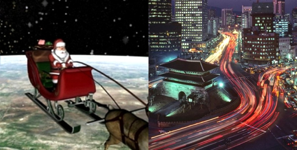 이에 따르면 산타는 크리스마스이브였던 지난 24일 밤 11시 25분경 한국을 지났다. 이후 10분 만에 중국 만리장성까지 간 것으로 나타났다.