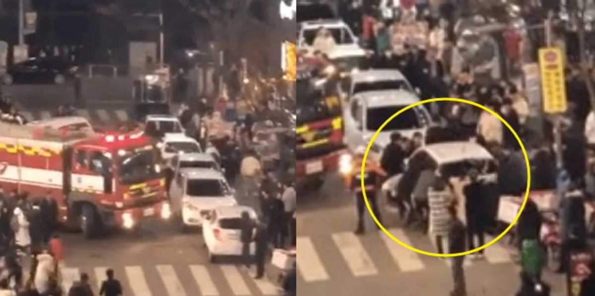 주차 금지구역에 세워둔 차량들 때문에 소방차가 못 지나가자, 인근에 있던 시민들이 불법 주차한 차량을 들어 옮겨 길을 터주었다.