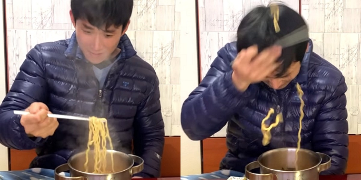 분말스프를 모두 흘리고, 라면을 갑자기 하늘로 집어 던지는 등 라면을 끓여 먹는 모든 과정이 그에게는 너무나도 버거워 보인다.