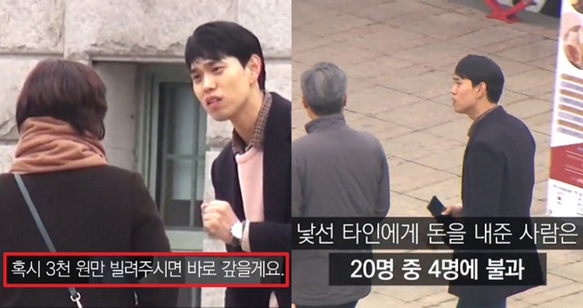 이 남성은 KBS 기자로 그가 3천 원을 빌려달라고 한 행위는 처음 만난 사람을 얼마나 신뢰하는지를 알아보기 위한 실험이었다.