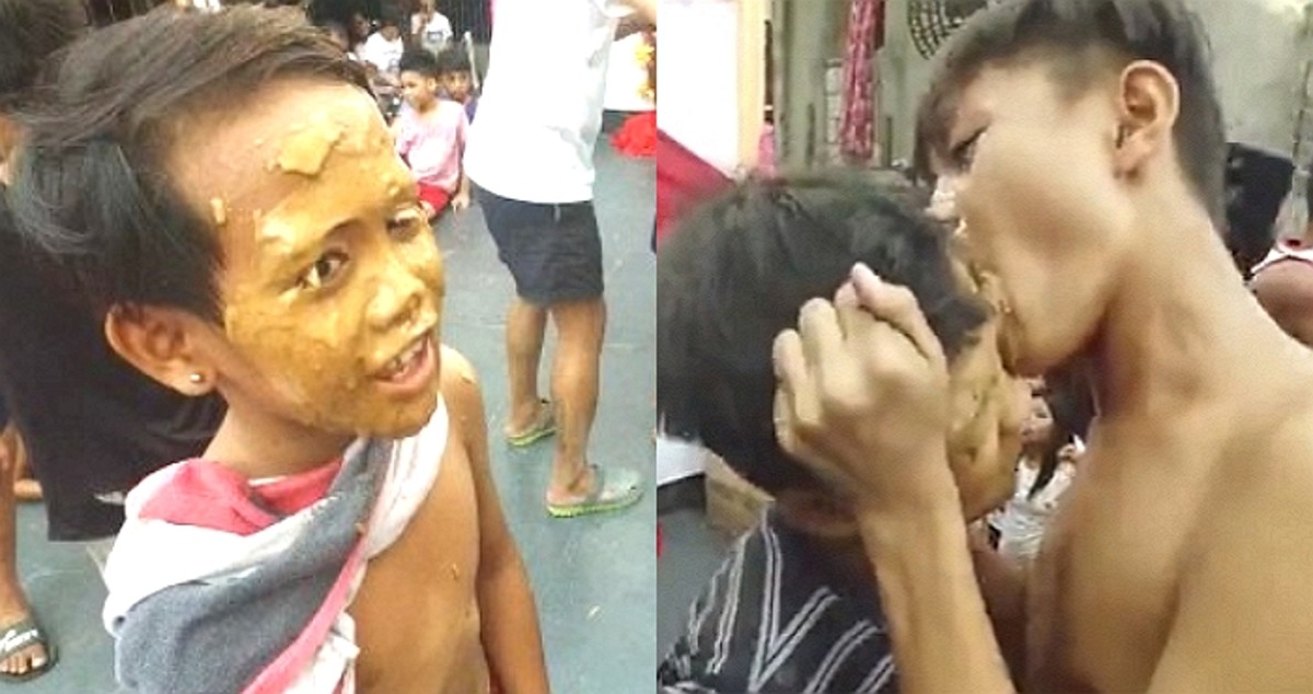 지난 8일(현지 시간) 영국 일간 메트로는 필리핀 마닐라 로우어 비쿠탄이라는 마을에서 열린 축제에서 어린 소년들이 하는 '땅콩버터 챌린지'를 소개했다.