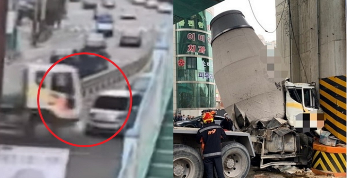 사고를 예감한 레미콘 운전자가 핸들을 급하게 꺾으며 교각에 부딪혔고, 이로 인해 대형 사고를 막을 수 있었다는 것이다.