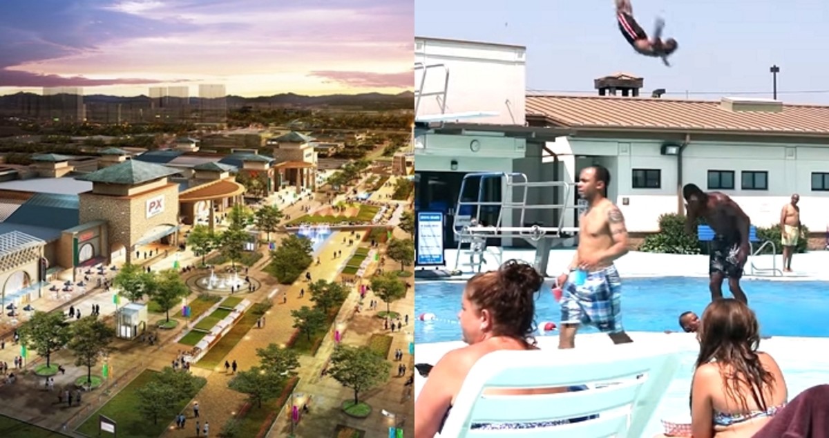 여기에 성당과 레스토랑, 워터파크, 체육관, 종합병원 등 가족들의 여가를 위한 시설들까지 존재하며 기지 내에는 3개 노선의 버스가 15분 간격으로 운행 중이다.