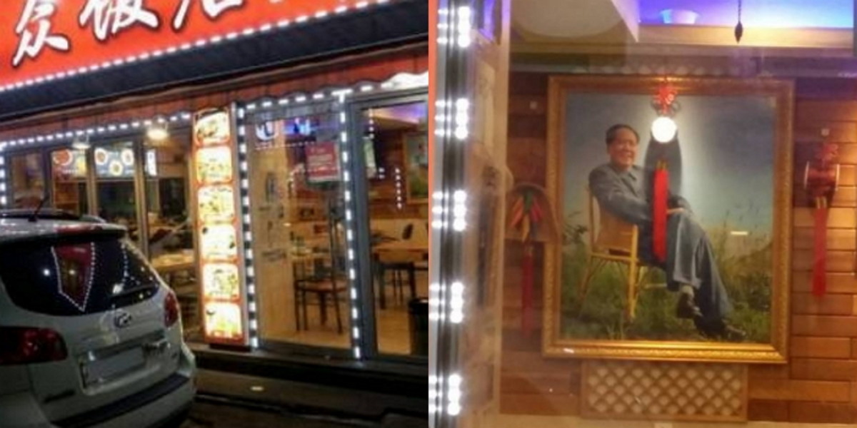 외관에 장식돼 전구와 붉은색 풍경 등은 그 분위기를 돋보이게 하는 데 충분했다. 이 중 누리꾼들의 관심을 받은 건 한 장의 사진이었는데, 음식점 중앙에 차지한 마오쩌둥 인물 사진이었다.