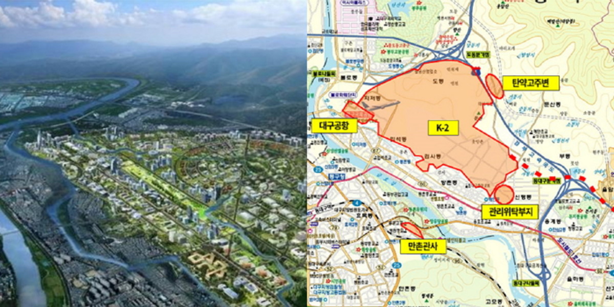 지난 21일 대구시에 따르면 현재의 군공항(K-2)와 대구국제공항 부지는 동구 검사동·도동·둔산동·방촌동·신평동·입석동·지저동 일대 693만㎡(210만평)다.