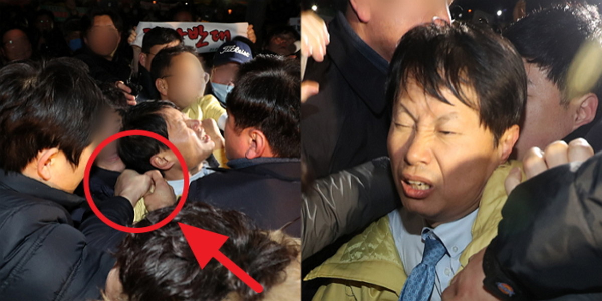'촛불집회' 현장을 찾았다가 물병 세례를 당한 것이다.