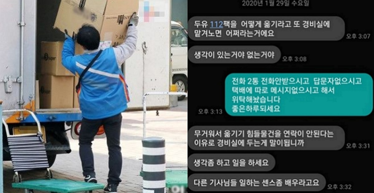 자신의 집까지 안전하게 물건을 배송해주는 택배기사를 머슴 부리듯 하대하는 이들이 많아서다.
