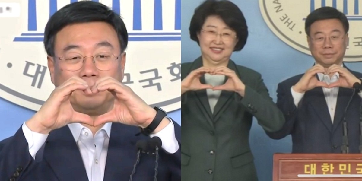 그는 수줍게 손하트를 하고는 "사랑합니다"라고 말했다. 그러면서 "저희는 '사랑합니다', 하트 모양으로 악수를 대신하려 한다"고 밝혔다.
