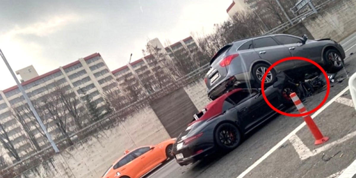 사진에서 911 카레라는 베라크루즈의 후미를 들이받고 있다. 베라크루즈는 뒷바퀴와 완전히 들려 있고, 포르쉐의 전면부는 반파돼 있다.