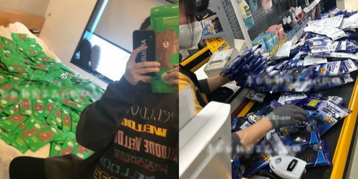 봉지와 박스를 챙겨와서는 마트에 있는 마스크를 잔뜩 쓸어 담은 후 SNS에 자랑스럽게 '인증'하는 중국인들도 많다.