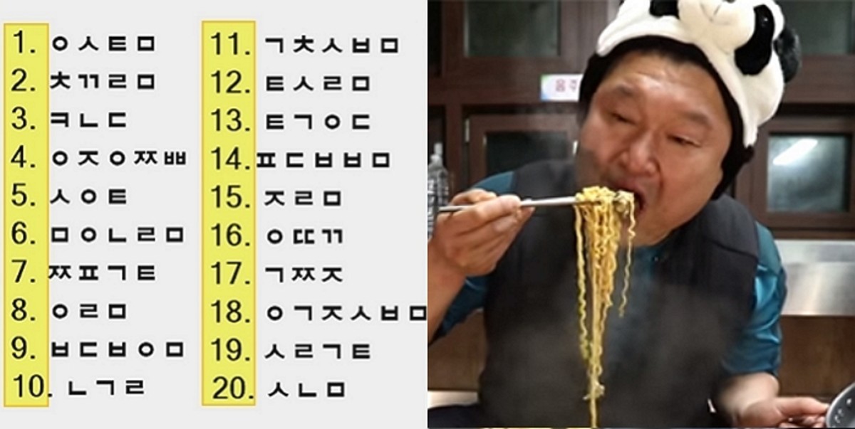 해당 테스트에는 시중에 판매되고 있는 20개의 라면 초성이 나온다.