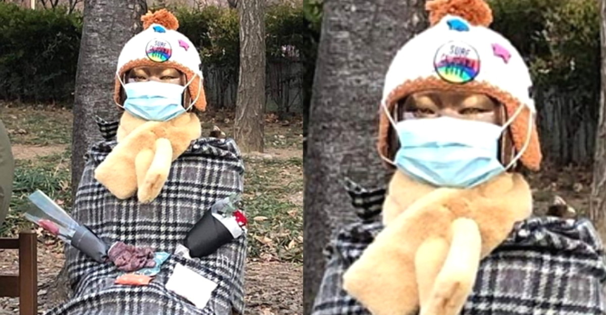 지난 8일 페이스북 페이지 '대구는 지금'에는 담요와 노란 목도리, 털모자, 그리고 마스크를 착용한 위안부 소녀상의 사진이 올라왔다.