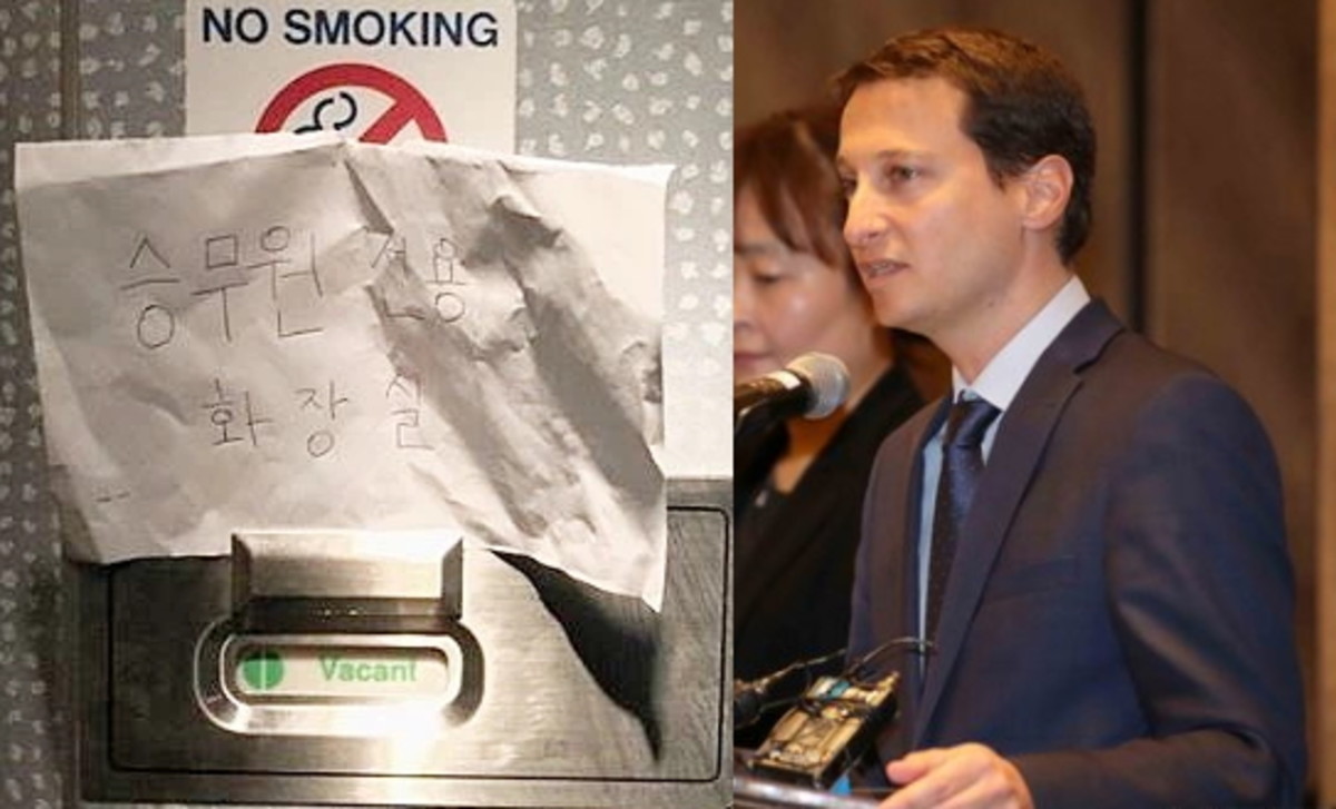 지난 10일 한 한국인 승객은 네덜란드 암스테르담발 인천행 KLM 항공편에서 기내 화장실에 한글로 '승무원 전용 화장실'이라고 적혀있는 문구를 발견했다.