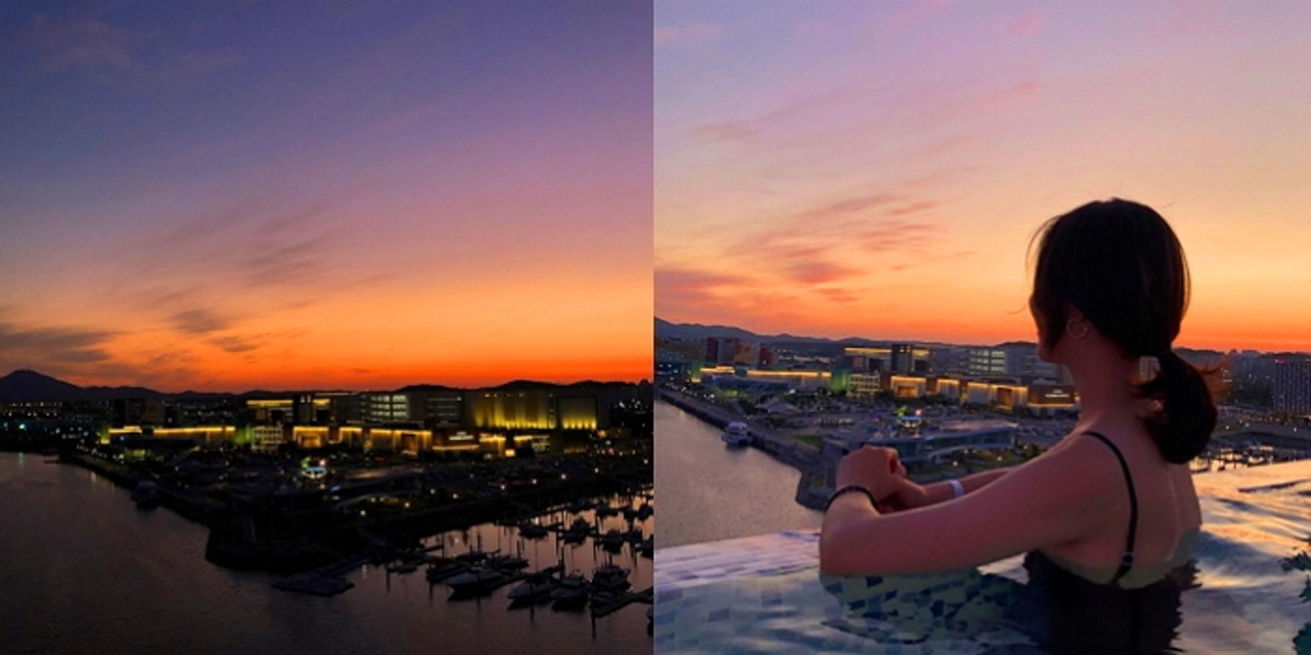 마리나베이의 자랑인 루프탑 'SKY POOL'에서는 시원한 아라뱃길과 푸른 하늘을 한눈에 볼 수 있다.