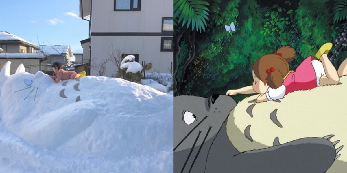 사진 속 눈사람은 미야자키 하야오 감독의 애니메이션 '이웃집 토토로' 속 토토로 캐릭터를 재현한 모습이다.