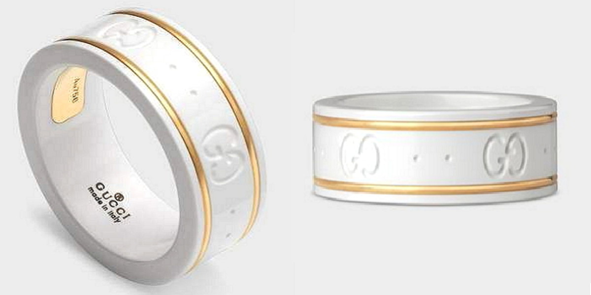 앞으로 다가올 기념일을 대비해 두 사람만의 커플 템을 찾고 있다면 영롱한 화이트 톤의 구찌 옐로우 골드 아이코닉 구찌 반지를 추천한다.