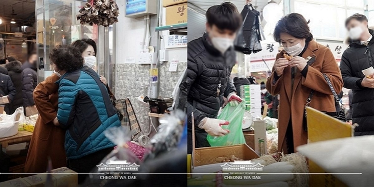 지난 18일 김 여사는 코로나19(신종 코로나바이러스 감염증)로 힘들어하는 자영업자들을 격려하는 차원에서 서울 중랑구 면목동에 위한 동원 전통 종합 시장을 방문했다.