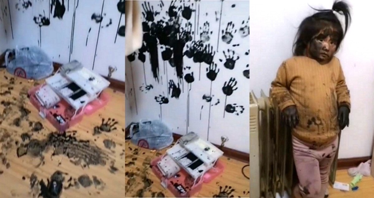 영상에는 온 집안이 까만 손바닥 잉크 자국으로 뒤덮인 장면이 나온다. 정체를 알 수 없는 손바닥 자국으로 집안이 난장판으로 변한 것.