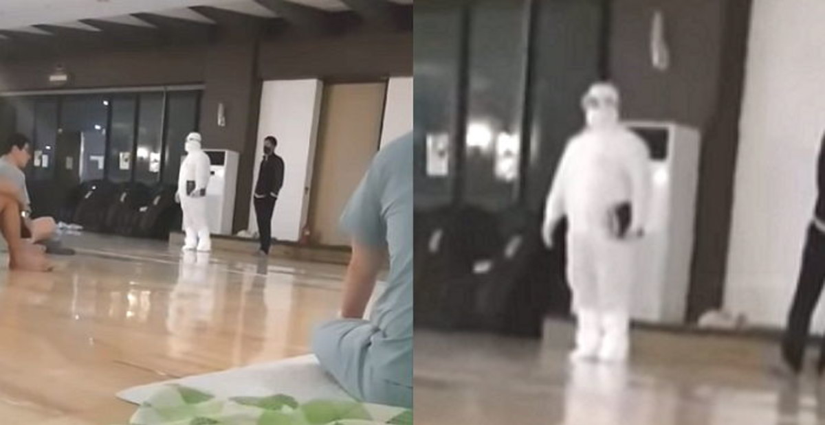 영상에는 보건소 관계자로 보이는 남성이 방호복을 입고 찜질방 내부로 들어왔다.