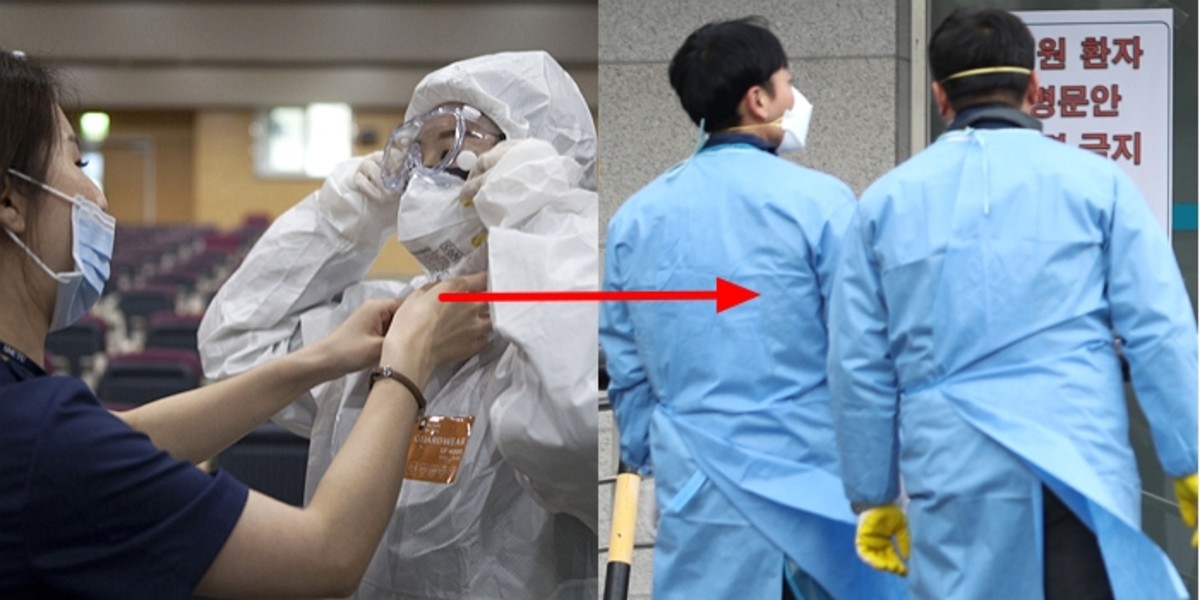 지침이 바뀌면서 의료진은 현재의 우주복과 비슷한 전신을 가리는 방호복(레벨D 방호복)을 벗고 가운과 N95 마스크(미세입자를 95% 이상 걸러내는 마스크), 고글과 장갑을 끼게 된다.