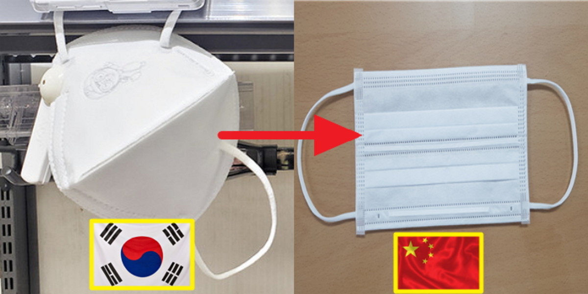 한국이 보낸 마스크는 '한국산 KF94 마스크'고, 중국이 보낸 마스크는 '평면 덴탈 마스크'인 탓이다.