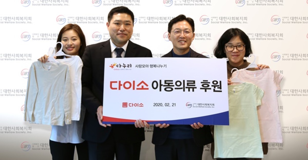 아성다이소는 대한사회복지회를 통해 경기북부 아동일시보호소, 한부모가족복지시설 열린집(서울), 한부모가족복지시설 잉아터(대구), 한부모가족복지시설 편한집(광주), 한부모가족복지시설 사랑샘(부산) 등 복지시설과 전국 곳곳에 있는 위탁가정에 아동복을 전달했다.