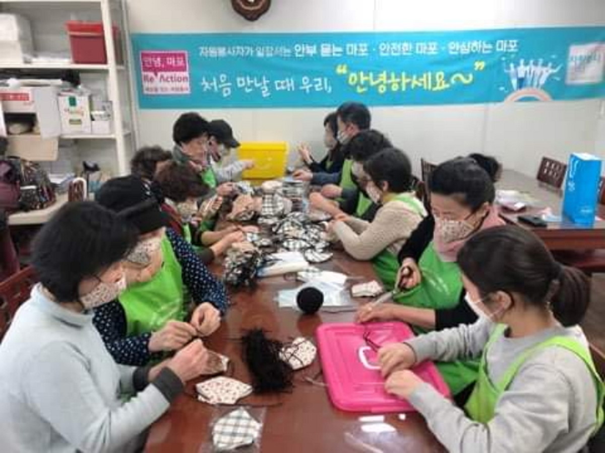 자원봉사캠프에서 활동하는 봉사자들의 도움의 손길도 이어졌다. 마포구 서강동과 신수동의 자원봉사캠프에서는 봉사자들이 수제 천연 면 마스크 제작에 힘을 모았다.