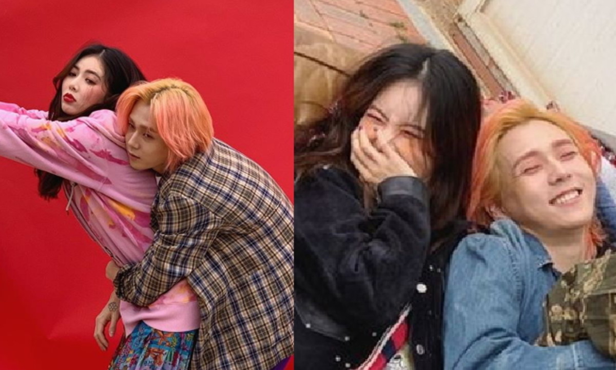 공개된 사진 속 현아는 던과 함께 어깨동무를 한 채 시크한 눈빛으로 카메라를 바라보고 있다.