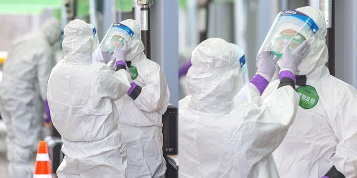이런 가운데 서로의 고글을 닦아주는 의료진의 모습이 포착됐다.