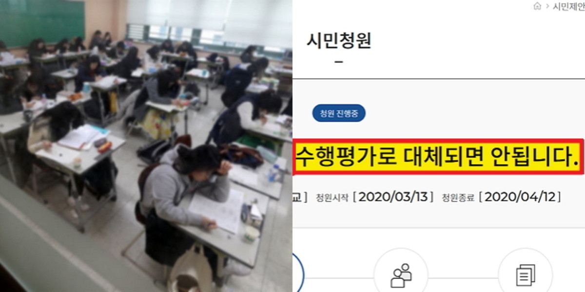 [인사이트] 유진선 기자 = 서울시교육청이 중·고교 1학기 중간고사 대신 '수행평가'를 권고한 가운데 이에 반대하는 청원이 올라왔다.