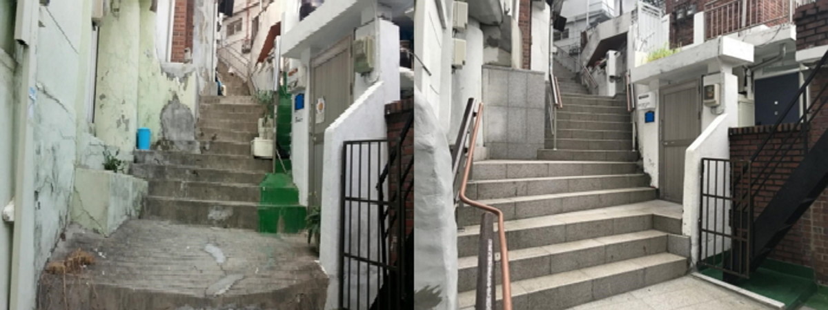 (좌) 혜화동 친환경 계단 조성 전, (우) 조성 후 / 사진 제공 = 종로구