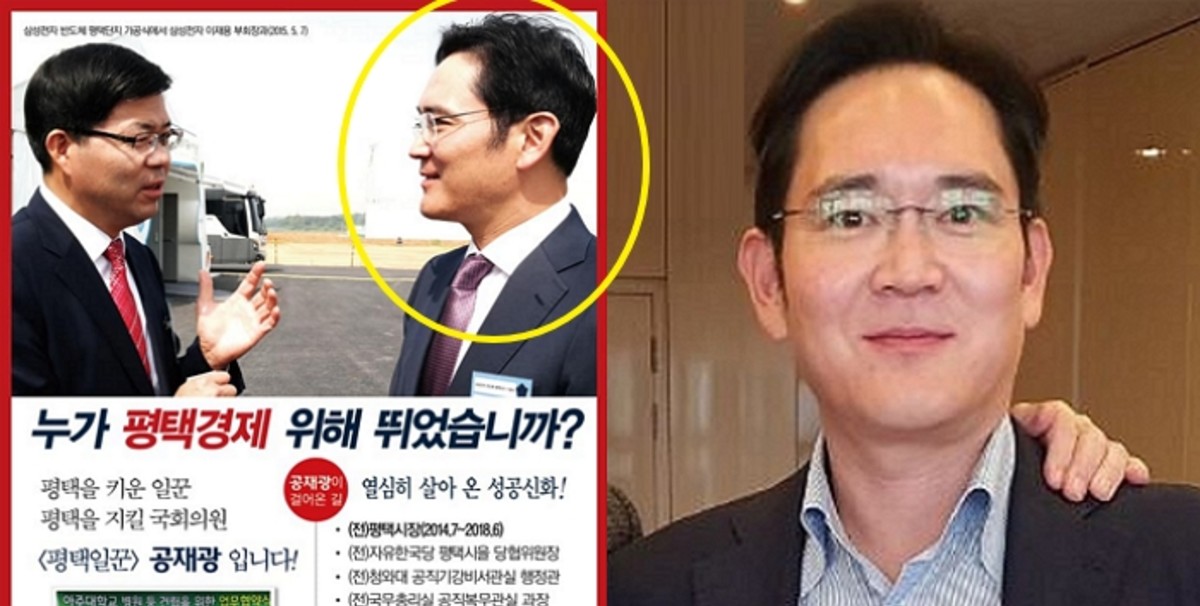 여기에는 평택 삼성전자 반도체 단지를 배경으로 공 후보와 대화를 나누는 이 부회장의 모습이 떡하니 실려있다.