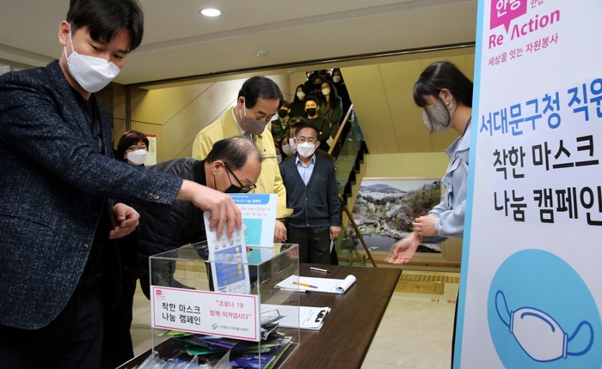 아울러 구는 우리은행 서대문구청지점이 기부한 보건용 마스크 300매를 복지시설에, 의류 대여 업체 '마이스윗인터뷰'가 기부한 면 마스크 300매를 서대문정담은푸드마켓 이용 주민들에게 배부한다.