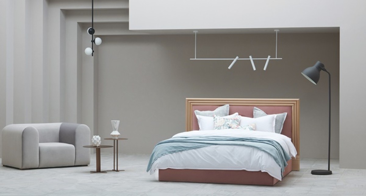 사각 형태로 둘러싼 입체감 있는 몰딩과 포근하면서 고급스러운 벨벳 원단이 조화를 이뤄 깔끔하지만, 이색적인 침실 분위기를 연출한다. 차분한 블루 그레이와 딥 핑크 두 가지 색상으로 출시됐다.